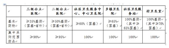 同时,方案还对各级医疗机构基本药物、集中采购范围药品采购金额比例做出如下要求: