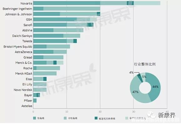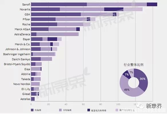 对全球21家顶尖制药公司进行全面的调查分析,发现制药巨头多达50%的研究工作集中于5类疾病:下呼吸道感染、糖尿病、肝硬化、艾滋病、疟疾。