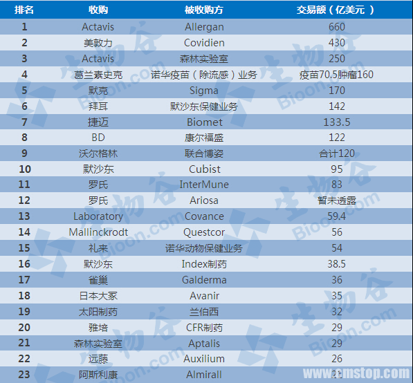 不过,对于这些不差钱的巨头们来说,好戏还在后面,让我们一起期待2015年生物医药领域的并购大事件!
