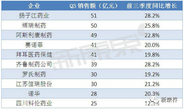 而跨国药企辉瑞成为亚军,市场规模达50亿元,前三季度同比增长25.8%%。阿斯利康紧随其后,市场规模49亿元,前三季度同比增长22.8%。