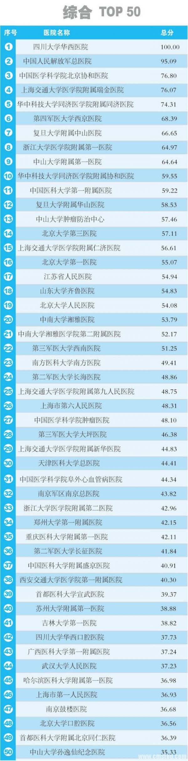 本次榜单的评价对象为全国846家三甲医院,以国家标准《学科分类与代码》中临床医学二级学科为分类依据,针对20个学科开展医院科技影响力评价,加上综合排行一共发布21个榜单。