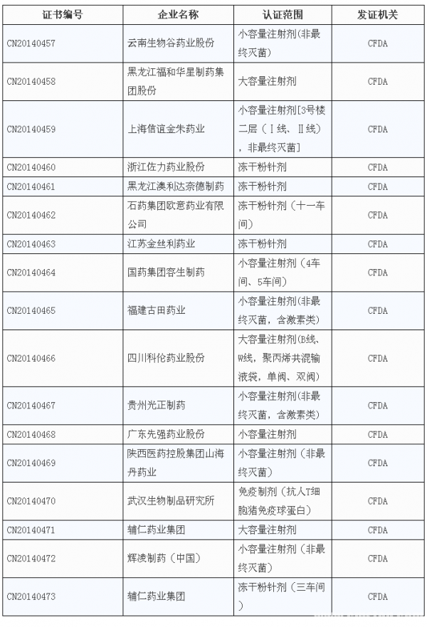 在2014年12月22日,本账号曾推送一则图文《31家药企通过新版GMP认证》。在2015年伊始,国家药监总局又发布一则GMP认证公告,云南生物谷药业股份等17家药企通过新版GMP认证,此批次企业的认证日期皆为2015年1月5日,有效期5年。