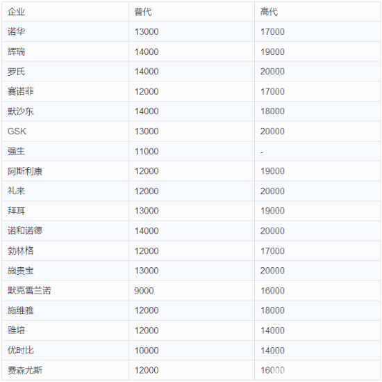欧美在华医药企业一般普代在12000左右,高代18000左右,当然高的可达25k左右。