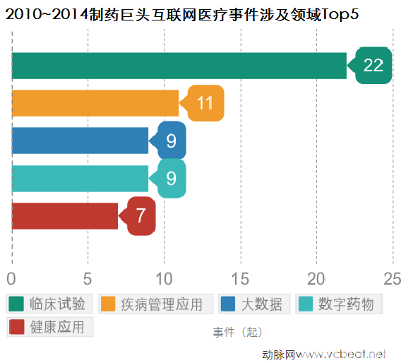 2010~2014制药巨头互联网医疗事件涉及领域TOP5