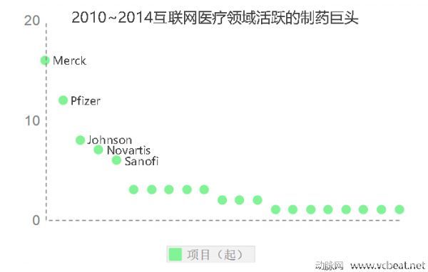 动脉网互联网医疗研究院结合多方数据,收集了在2010-2014年期间运用互联网医疗手段的21家著名制药公司,通过他们来看药企跨界互联网医疗的主流方向。本文将从活跃次数、细分领域、涉入途径等方面分析制药公司的互联网医疗布局,以及最受药企青睐的互联网医疗公司。