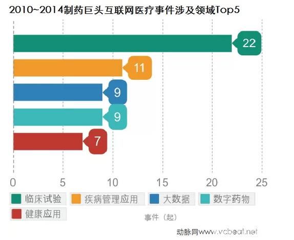 2010~2014制药巨头互联网医疗事件涉及领域TOP5
