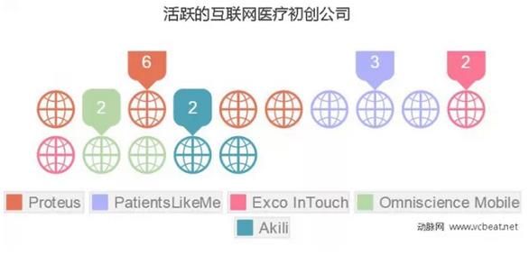 在制药公司近五年选择合作的互联网医疗企业中,主要有五家:Proteus、PatientsLikeMe、Omniscience Mobile、Exco InTouch、Akili。其中Proteus名列榜首,主要原因还是因为其研发产品能够监控用户是否坚持服药,而如何监控药物疗效是制药公司最头大的事。