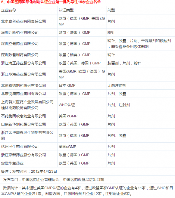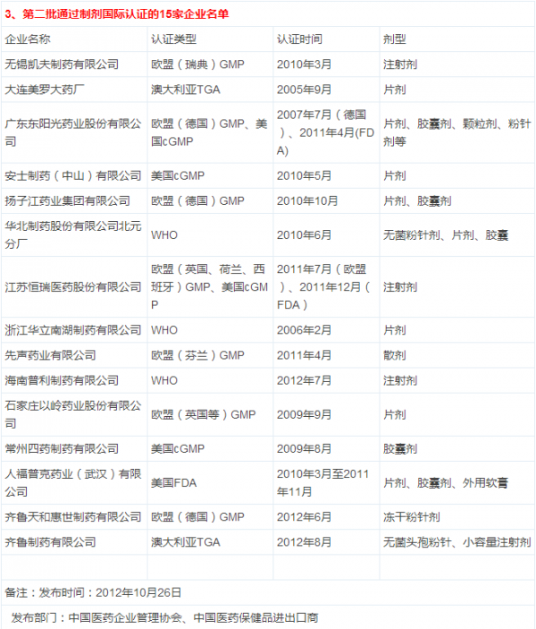 2.最新的由中国医药企业协会发布的国际化认证制剂企业名单,笔者总结了发布的全部三批名单和在新闻里提到的企业也作了补充了。
