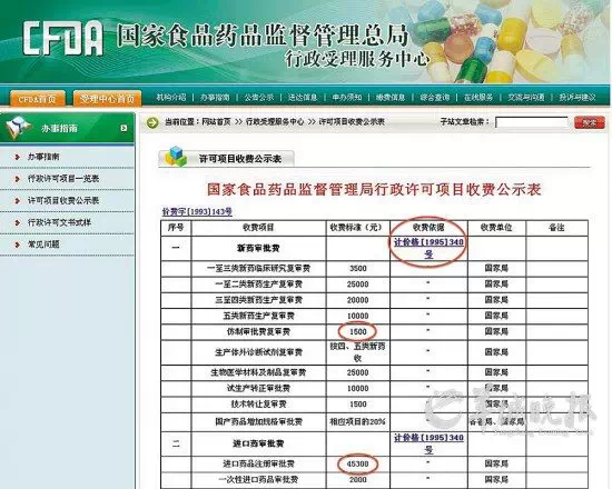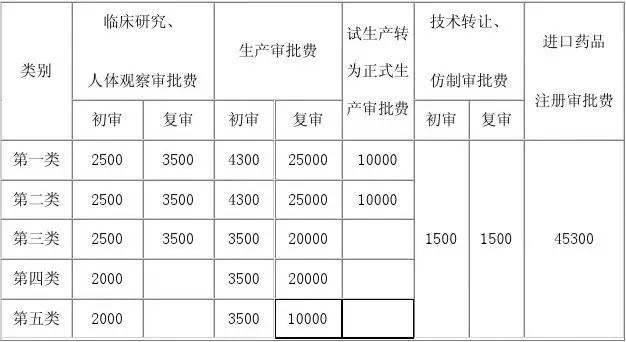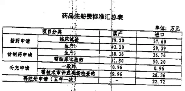 此前药品注册审批收费标准一览表: