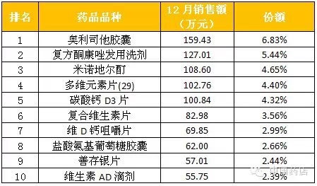 单品种中,奥利司他胶囊的销售额最好,接近160万元。另外西药前十品种中有多个维生素类产品,但彼此间销售额差距并不明显。
