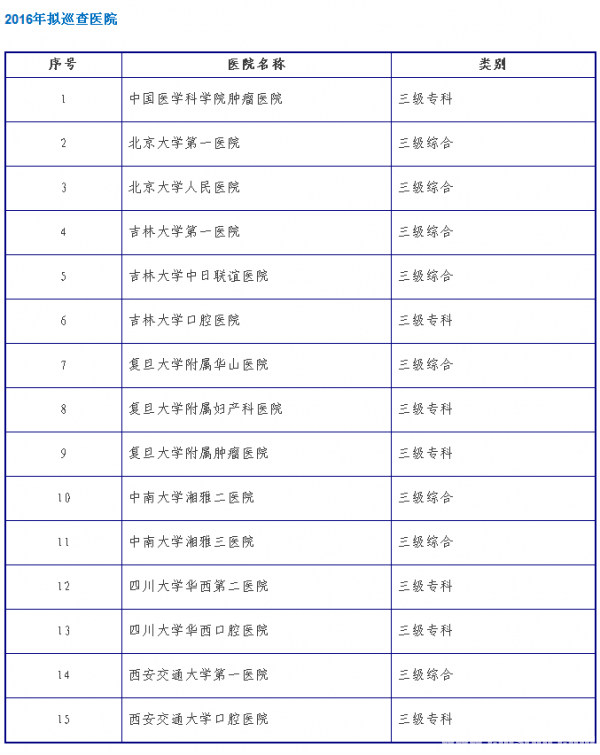 再次,从检查的范围来看,国家卫计委巡查的是委属医院巡查,各省、自助区、直辖市负责辖区内的三级医院(包括综合医院和专科医院)的巡查。