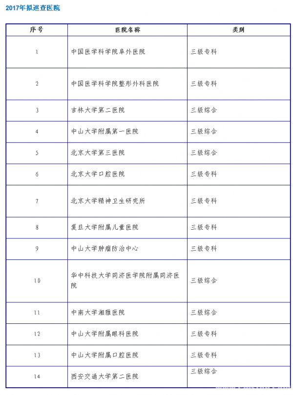 以下是卫计委2015年《关于印发大型医院巡查工作方案(2015-2017年度)的通知》全文,以及被纳入反腐巡查的医院名单附后。供赛柏蓝微友分享学习。