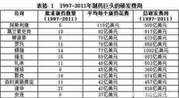 在2003年塔夫茨药物研发中心发表的数据中,每个上市的新药需要的平均投入为8亿200万美元,这相当于2013年的10亿4400万美元。此次更新的数据与2003年的数据相比上涨了145%。
