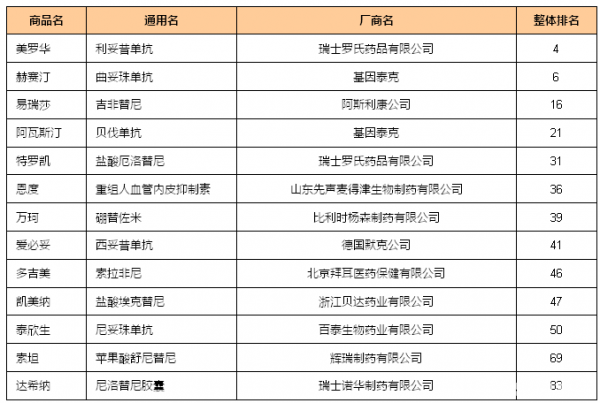 2014年抗肿瘤专利药品销售排名情况(IMS数据)