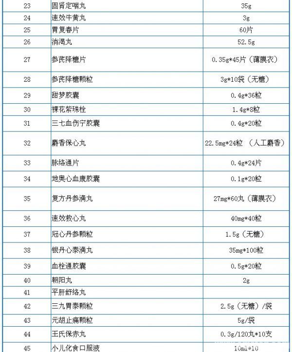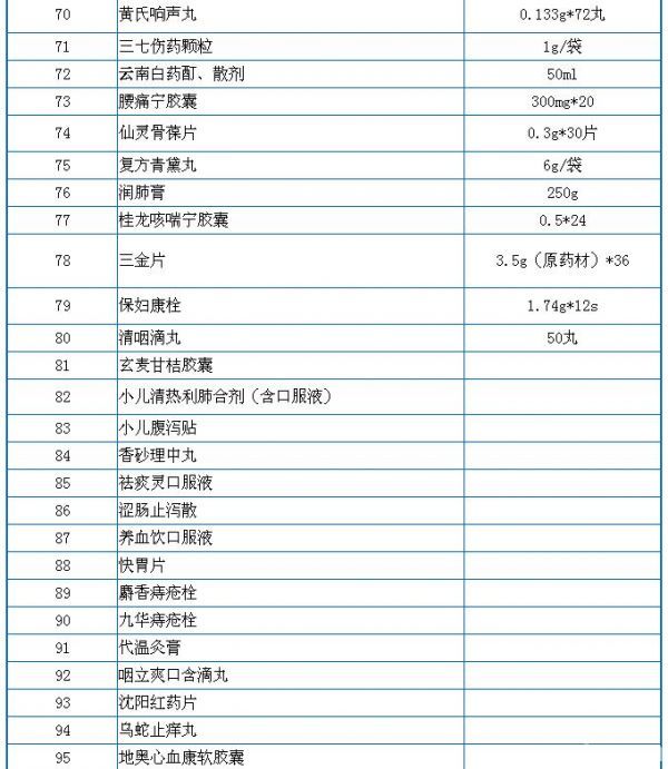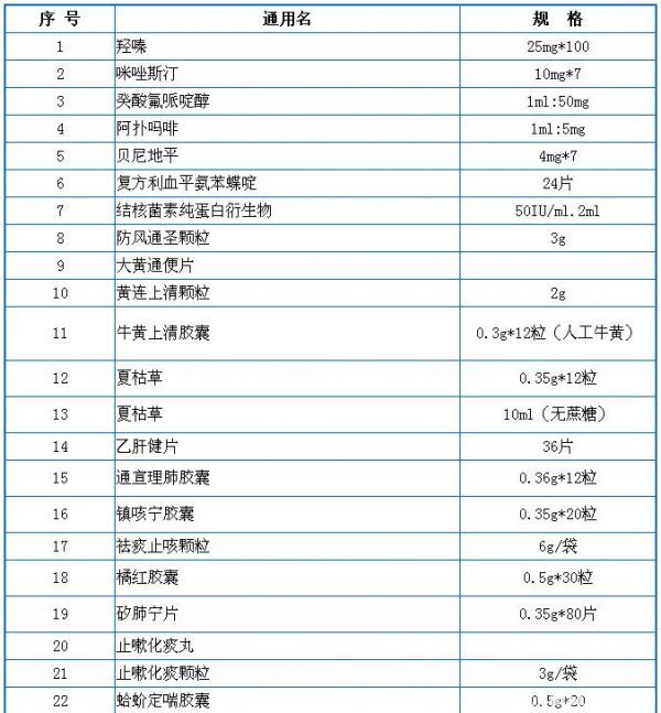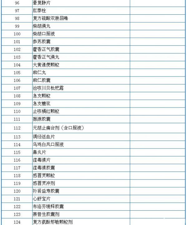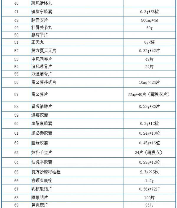 药品零售价格监测常用目录(127种)