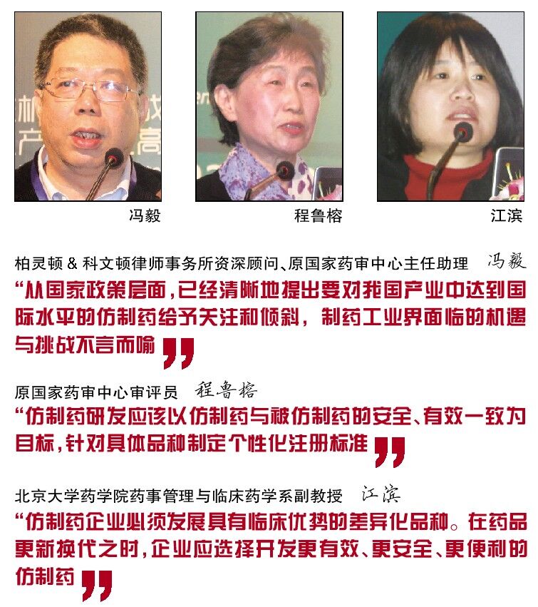 程鲁榕认为,仿制药研发不能机械套用已有国家标准,应该以仿制药与被仿制药的安全、有效一致为目标,针对具体品种制定个性化注册标准。此外,各申报者的药学基础存在差异,不同的原料药生产工艺、制剂处方工艺也可能不同。
