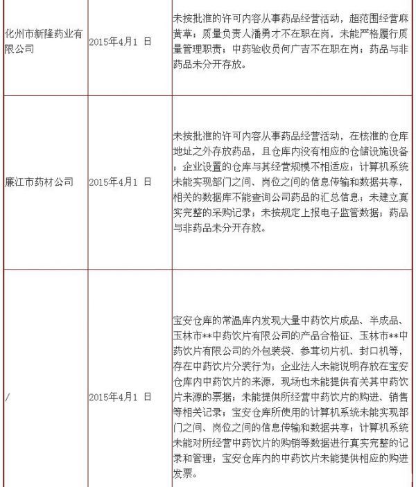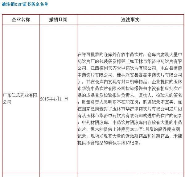 此外,4月1日,广东局还发布公告,撤销了5家药企的GSP认证,后面列出了违规具体行为,药店应引以为戒。