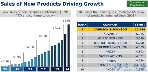 需要指出的是,强生并非一家传统的制药公司,实际上它还是全球最大的医疗设备制造商,拥有一个庞大的个人保健产品分部。尽管保健产品甚至医疗器械并非特别快速增长的领域,但它们提供了强大的定价能力(个人保健产品)和乐观的长期前景(医疗器械)。而强生的制药分部,也一直在为公司带来丰厚的利润及盈利增长。从2009年至2014年中期,该公司已向市场推出了14个新分子实体(NME)药物,实现销售收入125亿美元,其中包括血癌药物Imbruvica和糖尿病新药Invokana。另一方面,强生在很多高增长治疗领域均布置有产品组合,并且已连续52年实现股息增长,在所有制药巨头中,强生尤其值得关注!