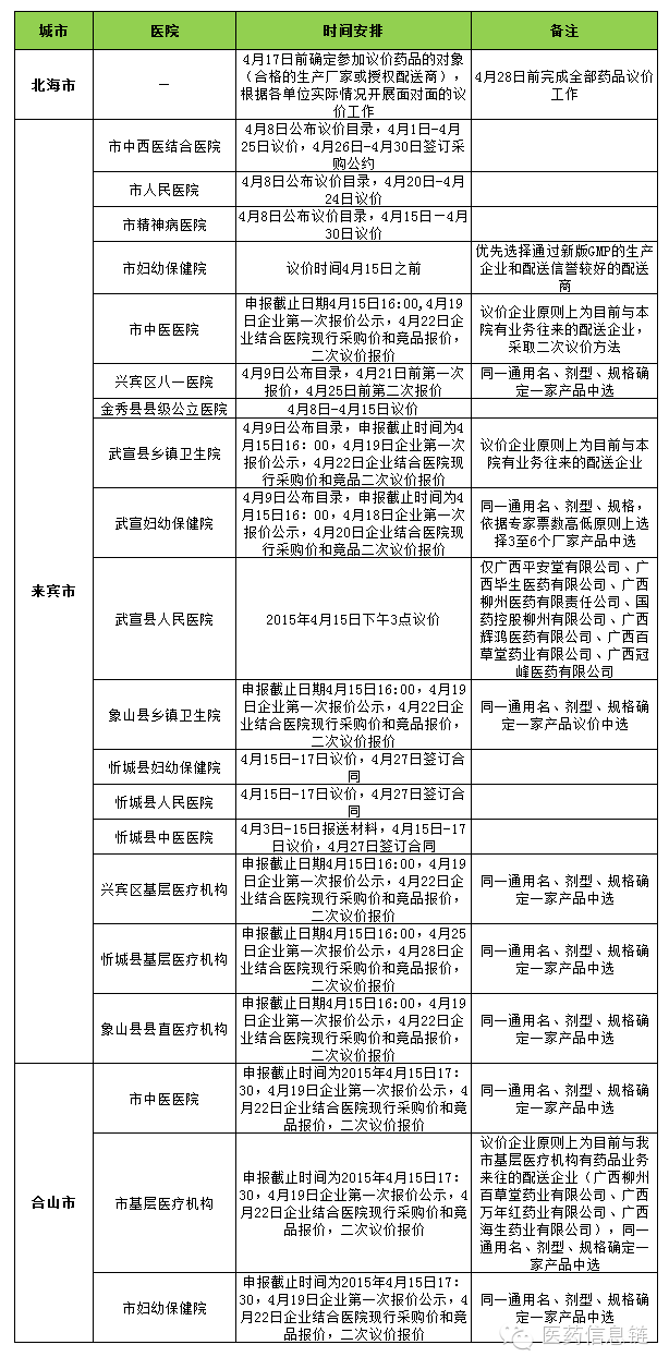 由于广西低价药议价是由各市卫生局或者医疗机构发起的,请招标同仁们务必要留意各市卫生局网站通知。