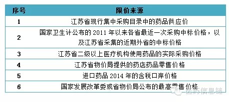 从征求意见稿来看,价格联动也是江苏省药品采购的主打方向。以下是采集限价来源: