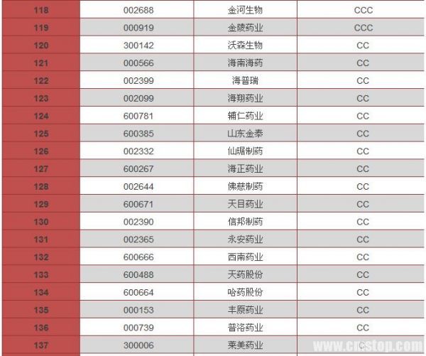CC级:上市公司基本不具备盈利能力,企业创新和增值能力基本不能保证实现。