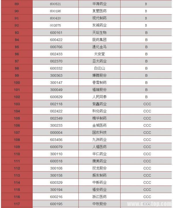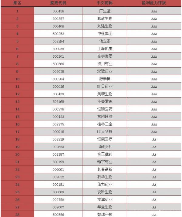 根据超验(Transcend Group,TG)旗下超验创新研究院(Transcend Innovation Research Institute,TIRI)的大数据中国上市公司最新研究(Big Data Enterprises Research , BDER)表明,在中国医药制药上市公司盈利能力大数据评级排名中,广生堂(300436)盈利能力评级为 AAA,位居第一;我武生物(300357)盈利能力评级 AAA,位居第二;九强生物(300406)盈利能力评级为 AAA,位居第三。