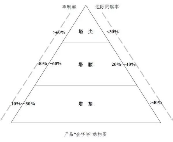 产品金字塔组合战略,是指在企业内充分发挥多产品经营优势,追求规模经济和利润最大化的有机统一。在产品生命周期的指导下,对不同产品实施分类聚焦、分层经营,使产品在企业内不断获得相应的盈利模式。