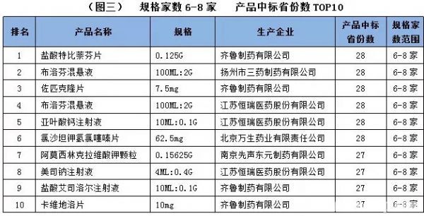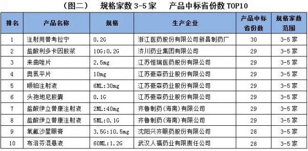 不同的质量层次,不同竞价企业数的产品中标情况不同,以下图(二)到图(五)展示普通质量层次下3家以上竞争企业数产品的中标省份概况。