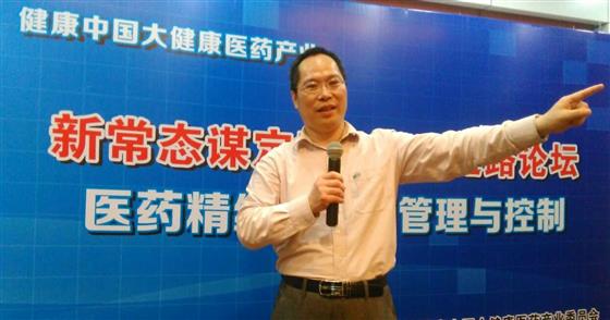 图示:国家健康中国大健康医药产业委员会主任、国食药监谋定医药产业论坛主持人万祥军作《医药精细化招商管理与控制》 主题演讲并主持《《未来医药招商的出路论坛》