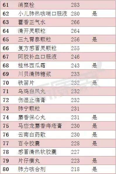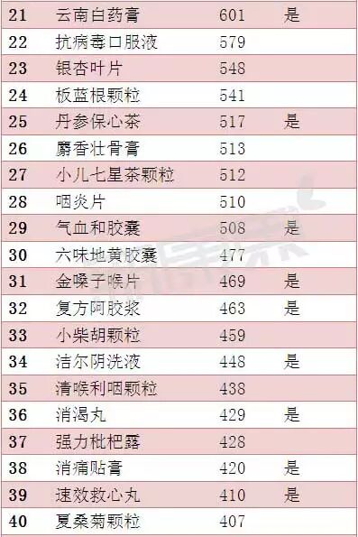 进入中成药TOP100品种数量较多的品类还有咽喉、口腔用药,妇科用药,止咳、化痰药,外用镇痛药,泌尿补肾类,胃肠道用药和风湿、骨伤科内服药(中成药)这些常用药物。