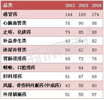 2014年中国药品零售市场中成药TOP100品种的市场规模达482亿元,占整个零售市场中成药规模的50%左右。