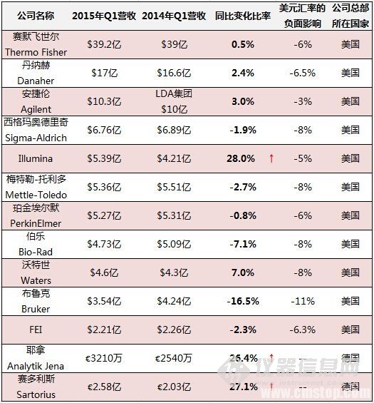 曾经有仪器公司高管在Pittcon 2015上表示,强劲的美元影响将会触及他们的底线。不想一语成谶,美元汇率真成了各家美国上市仪器公司2015年Q1财报增长的最大“拦路虎”。