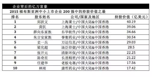 下图为2015福布斯亚洲中小上市企业200强中的持股价值之最。