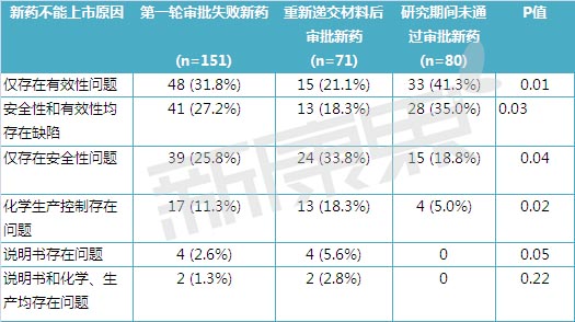 表1 新药上市申请第一轮失败的原因统计