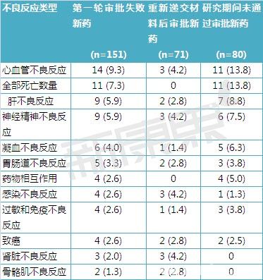 (三)安全性问题导致新药上市申请失败