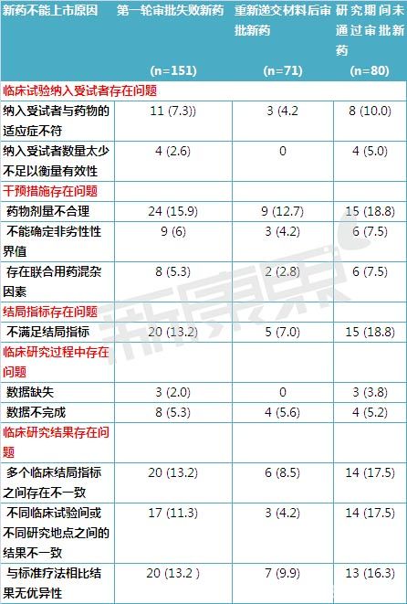 二、导致新药上市申请失败的主要原因