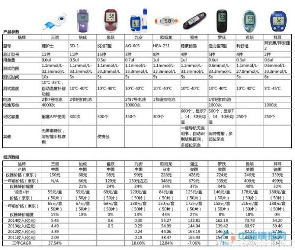 图表:各品牌血糖仪对比分析