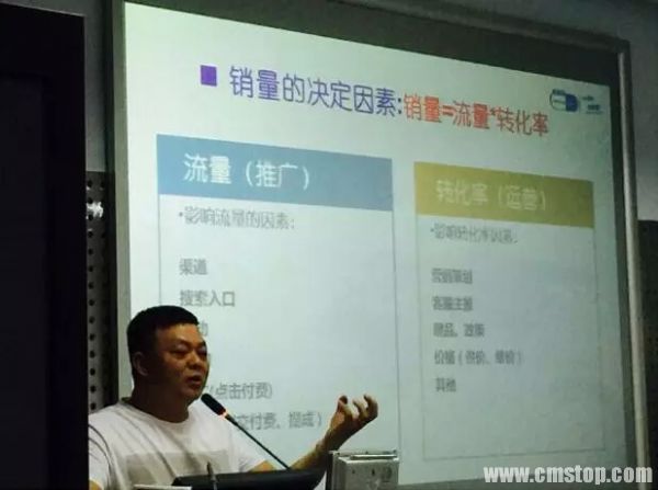对工业电商运营策略他提出了以下几点建议:1、存量:搜索引擎的关键词优化和网内资源位的争取(DSR评分影响搜索权重);2、增量:开直通车,上钻展,做活动;3、转化率:产品图片、客服的服务水平、产品的性价比、产品的评价等;4、客单价:选品很关键,关联销售,满减活动。最后,针对用户特征做好精准营销。