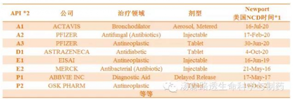 *1:NCD-NewportConstraintdate,是汤森路透仿制药专家通过整合专利保护和行政保护的情况,汇总成各个国家该药物的最终到期时间。