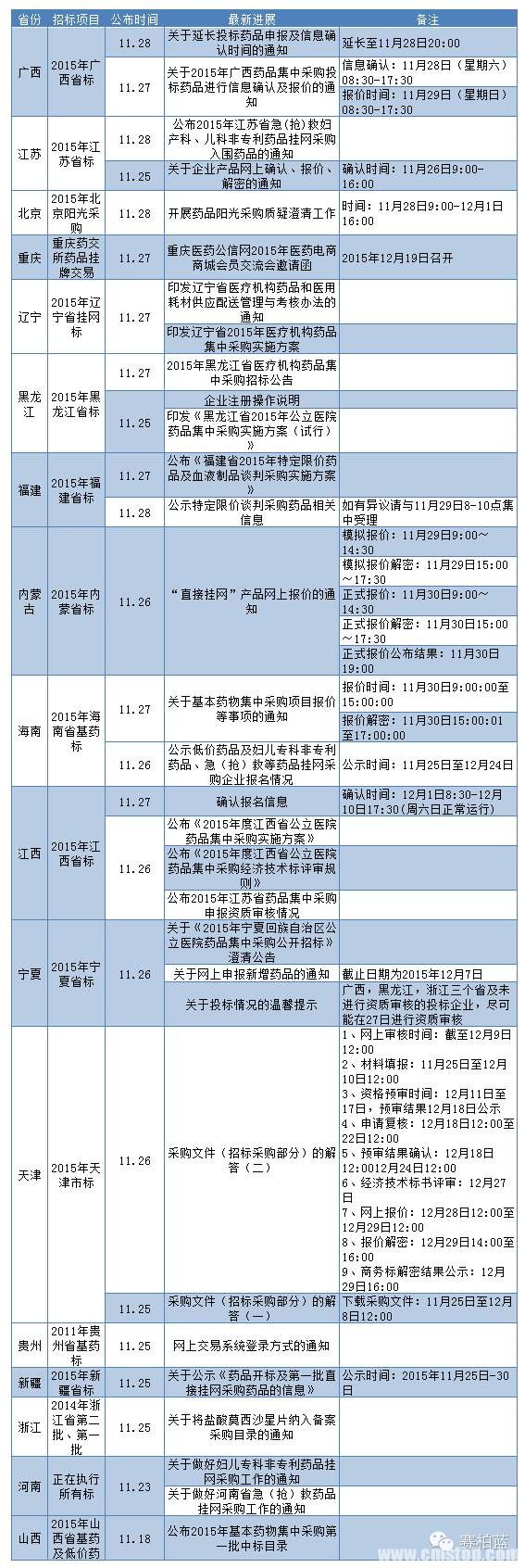 最近各省招标公告频发,在招标工作高强度的状态下,各位药招同仁务必细心谨慎。以下是各省最新的招标动态,以供大家参考。