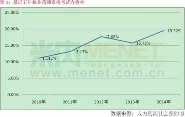 执业药师资格考试合格率一直偏低已经是行内不争的事实,数据显示,最近五年执业药师资格考试合格率一直不超过20%。2014年全国执业药师资格考试报考人数为840189人,实际参考人数为702459人,参考率为83.61%,但合格人数为137118人,合格率为19.52%,已是最近五年内合格率最高的一年。