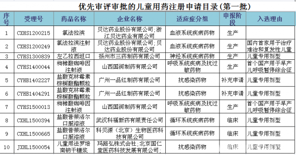 12月21日,为贯彻落实《关于药品注册审评审批若干政策的公告》(2015年第230号)要求,国家食品药品监督管理总局药品审评中心(CDE)公布《临床急需儿童用药申请优先审评审批品种评定的基本原则》,并根据上述原则对10种儿童用药优先审评申请进行了评定,公示日期为:2015年12月21日-2015年12月28日。