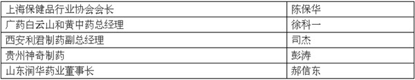 上海保健品行业协会会长陈保华广药白云山和黄中药总经理徐科一西安利君制药副总经理 司杰贵州神奇制药 彭涛山东润华药业董事长郝信东