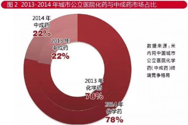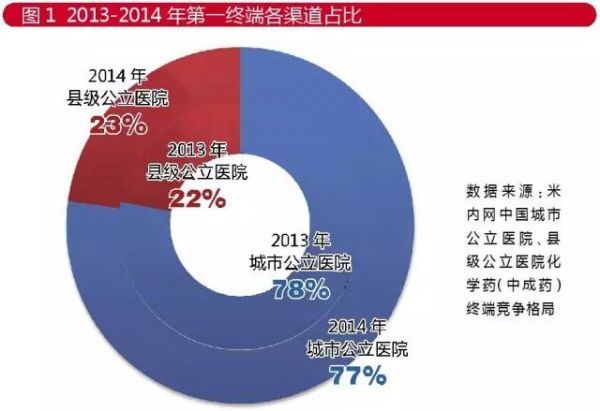 据米内网中国城市公立医院化学药(中成药)终端竞争格局数据,2014年中国城市公立医院药品销售同比增长12.6%,在第一终端(包括城市公立医院、县级公立医院)渠道中的占比接近八成,但占比有缓慢下降趋势。