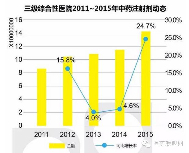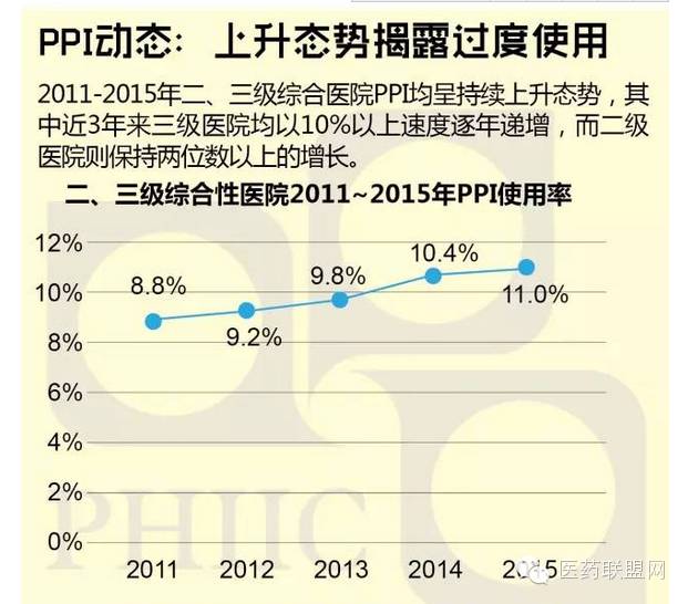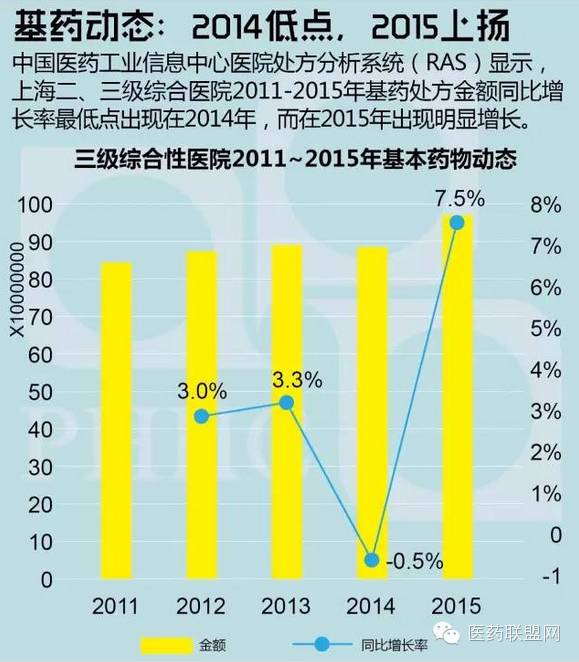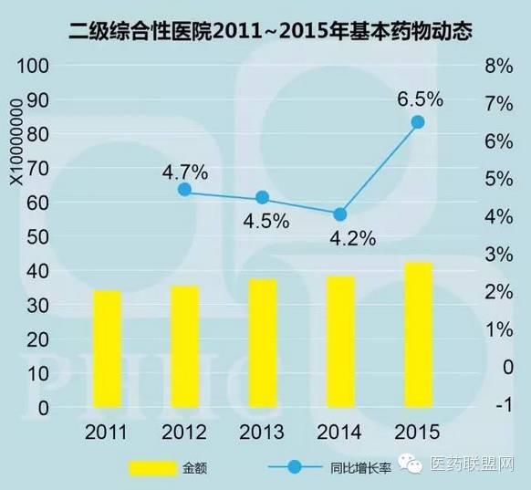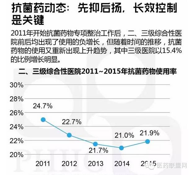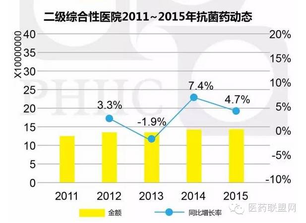 基本药物、PPI、抗生素、中药注射剂是医院用药市场中大品类,尤其是抗生素,一直各类医院用药的排名第一的种类。这四大类药品中,在这5年的表现情况如何,未来又有何种趋势,哪个品类增长情况好,有市场潜力?这几张表格给我们提供了较好的判断。