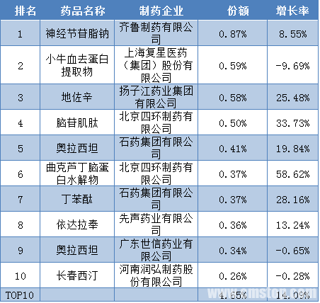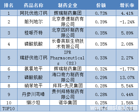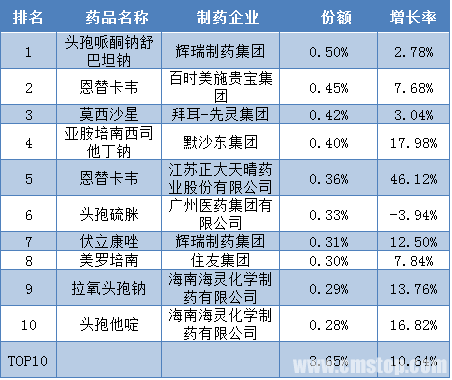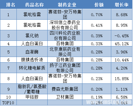中国药学会科技开发中心发布的《2015年全国样本医院药品采购排行榜》中,分别展示了各重点大类药品在医院销售的前十品种。