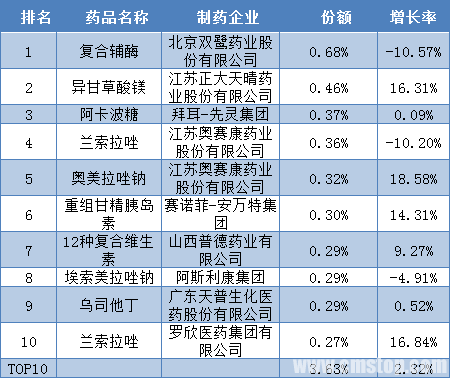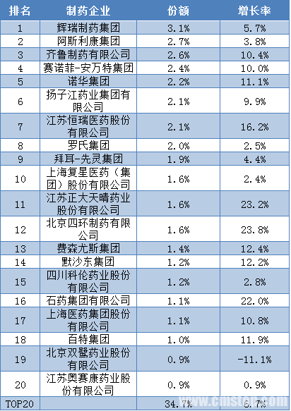 在销售额排名前20名药企中,11家为本土药企,9家为外资药企。可见,本土药企在激烈的市场竞争中,逐渐凸显了其重要的市场地位。