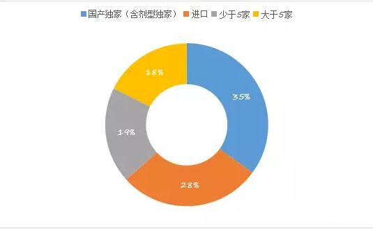 笔者粗略统计了一下该城市2015年全部医保、基药产品的销售情况,按照进口、国产独家、国产少厂家、及普药等不同类型药物的销售比例如下图。