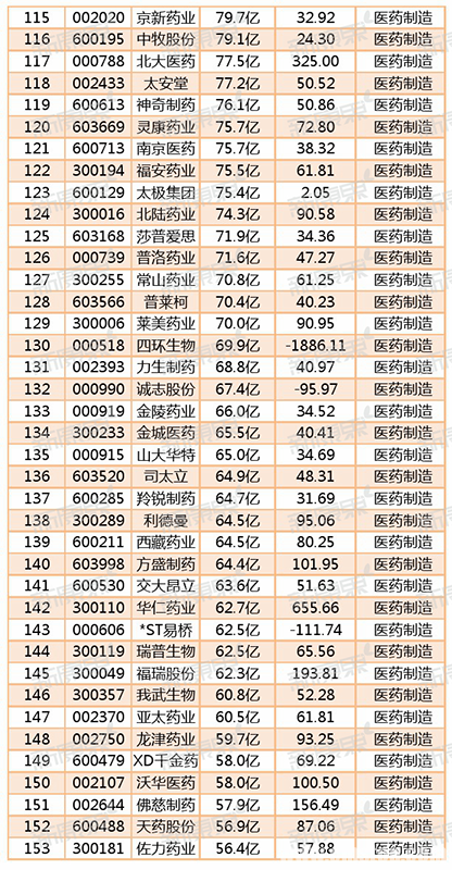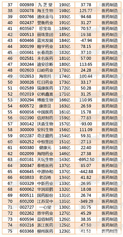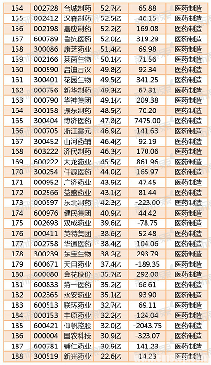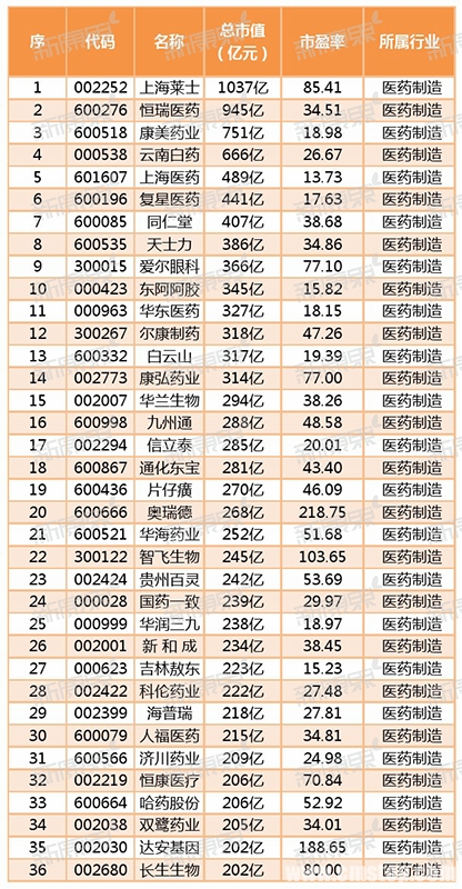 根据东方财富网的行业分类,新康界特梳理了上述188家归属于医药制造行业的企业市值排行榜(数据截至6月30日收市)。其中,上海莱士位居榜首,还成为了有且仅有的一家千亿市值药企。据国家卫计委统计,2015年国内献浆量为5700吨,而血浆潜在需求应为1.4万吨,供需缺口明显。并且,血液制品一直是稀缺医疗资源,现在价格、浆站和献浆员政策条件的放宽,将有利于提高增量。但血制品价格被抑制已久,市场供需严重失衡,且血制品是刚性需求。产量增长仍无法缓冲价格增长的速度,未来三到五年,血制品价格都会持续上涨,血液制品行业将持续走势稳健。