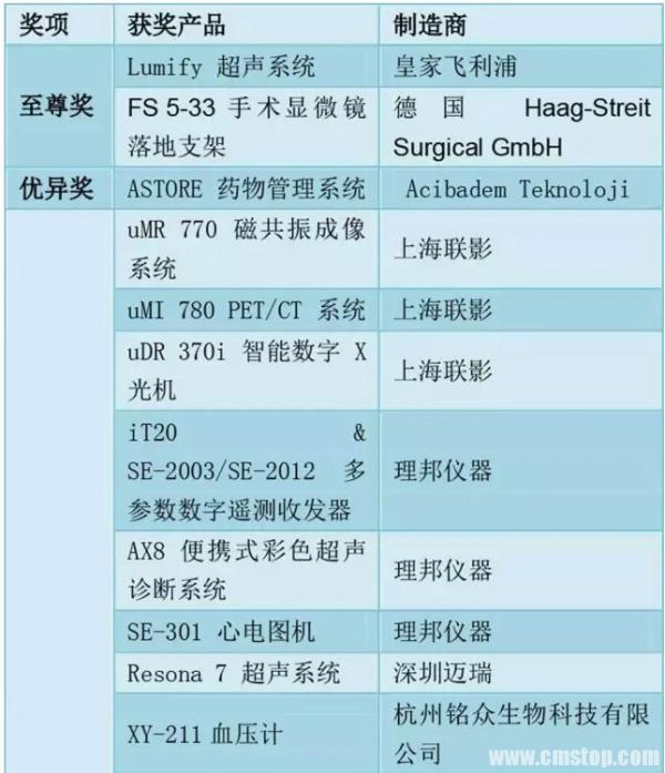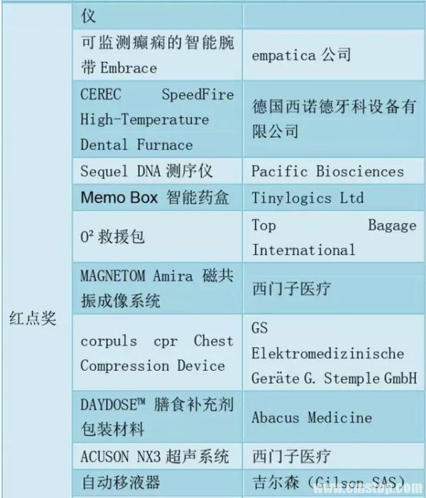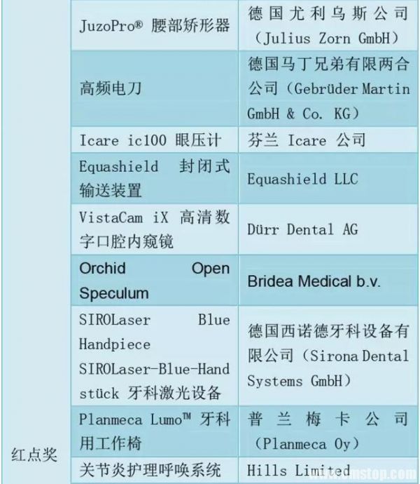 而在获奖的86个产品中,有15个来自中国大陆医疗器械公司。分别是: